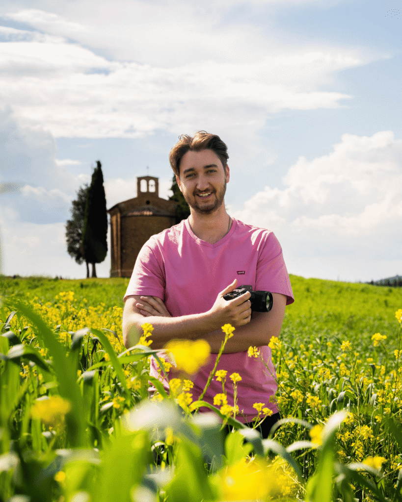 Durante l’esperienza in Val d’Orcia sarà il punto di riferimento tecnico: ti guiderà passo dopo passo nella gestione dell’attrezzatura, nella lettura della luce naturale e nella post-produzione, con un approccio pratico, diretto e alla portata di tutti.